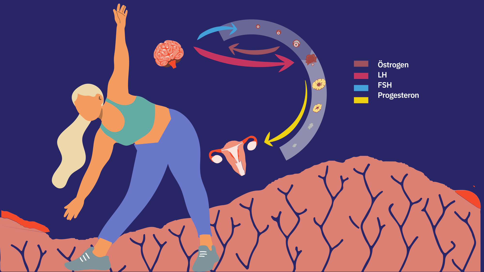 - Hormone: Der steigende Östrogenspiegel sorgt für mehr Energie und bessere Regeneration. Außerdem ist jetzt die Aufbauphase, da Östrogen anabol ist.